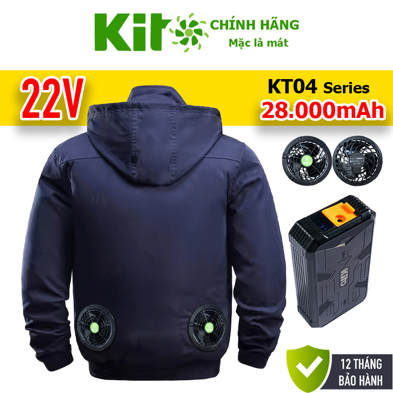 Bộ Áo điều hòa KITO chính hãng KT04 pin 28000mAh 3 cell, quạt 22V, bảo hành 1 đổi 1 trong 1 năm